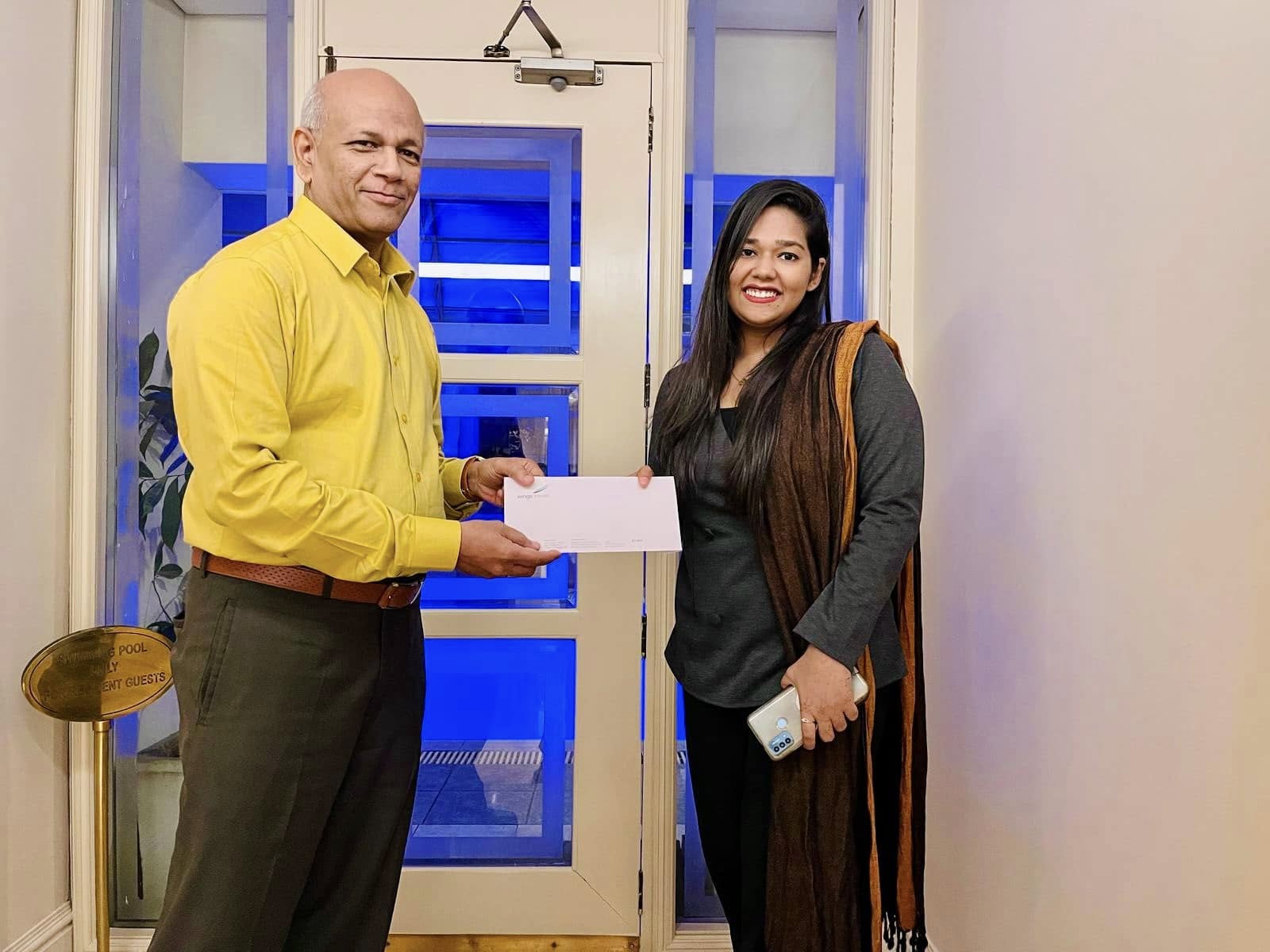 Receiving my increment Letter from my supervisor at Wings Travels